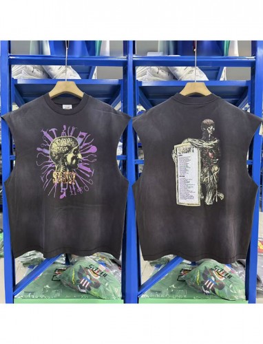 Saint Michael 빈티지 프린팅 washed 라운드 민소매 나시 반팔 티셔츠 [스트릿 편집샵 람스]